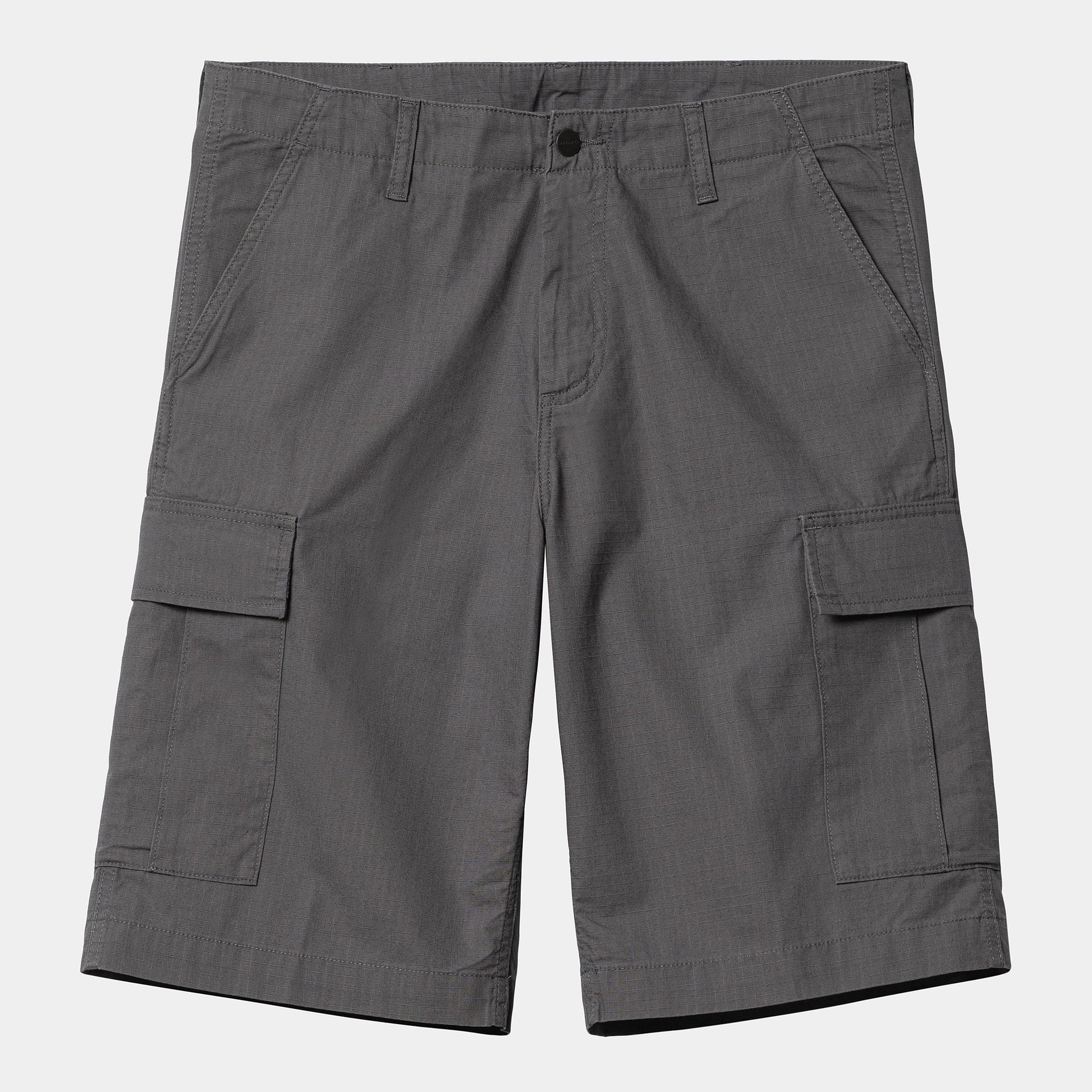 The Regular Cargo Short is constructed from a lightweight cotton ripstop fabric. This robust cotton has been rinsed for added comfort without sacrificing its durable qualities. Features multiple pockets and a woven Carhartt WIP label on the right leg pocket.
