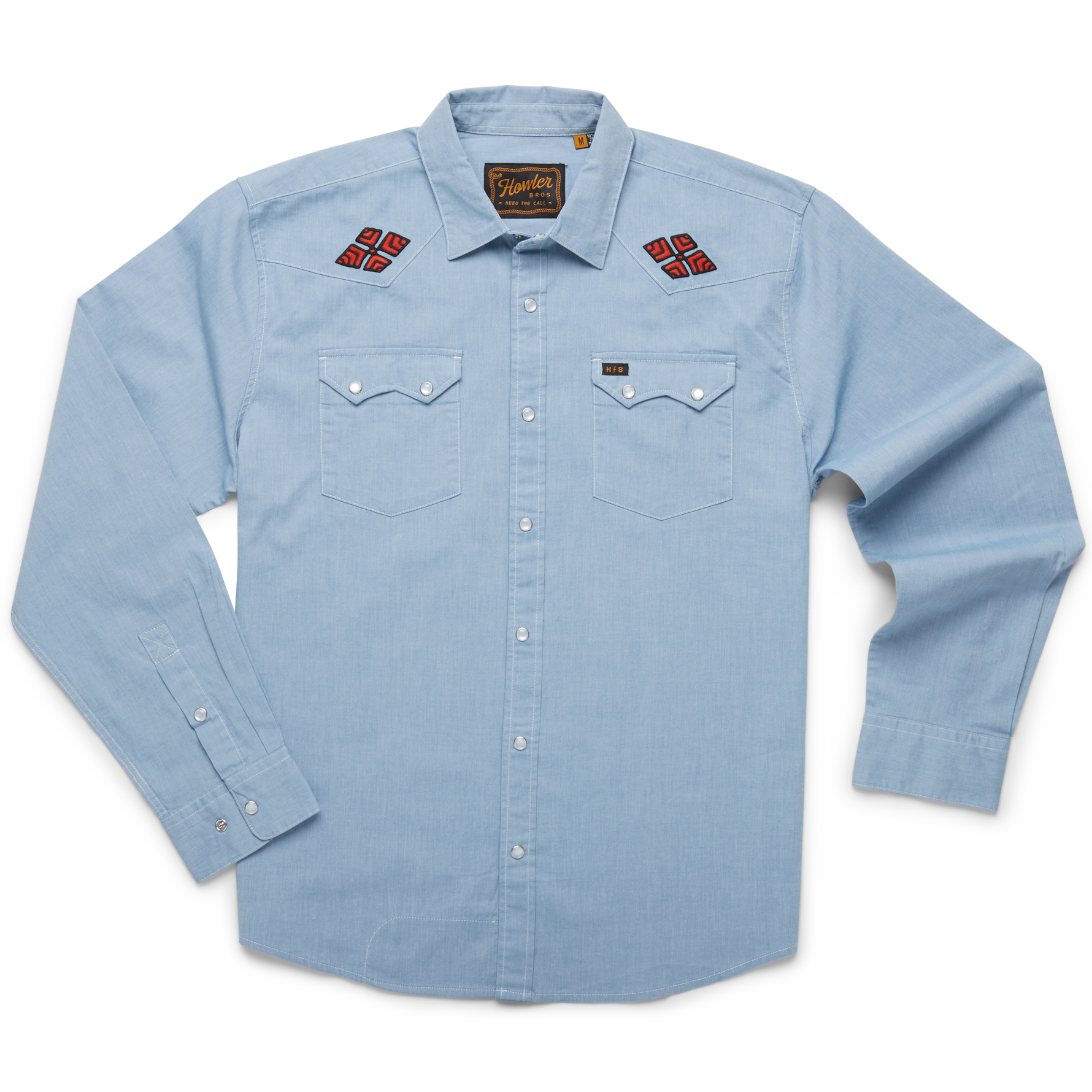 The Crosscut Deluxe is the most sought after item in our fall line year in and year out. Yes, the vintage inspired motif embroidery makes a big statement but so too do the bountiful pearl snaps, western yokes and robust stretch chambray. Collect these right along with your Gauchos for year-round Howler coverage.